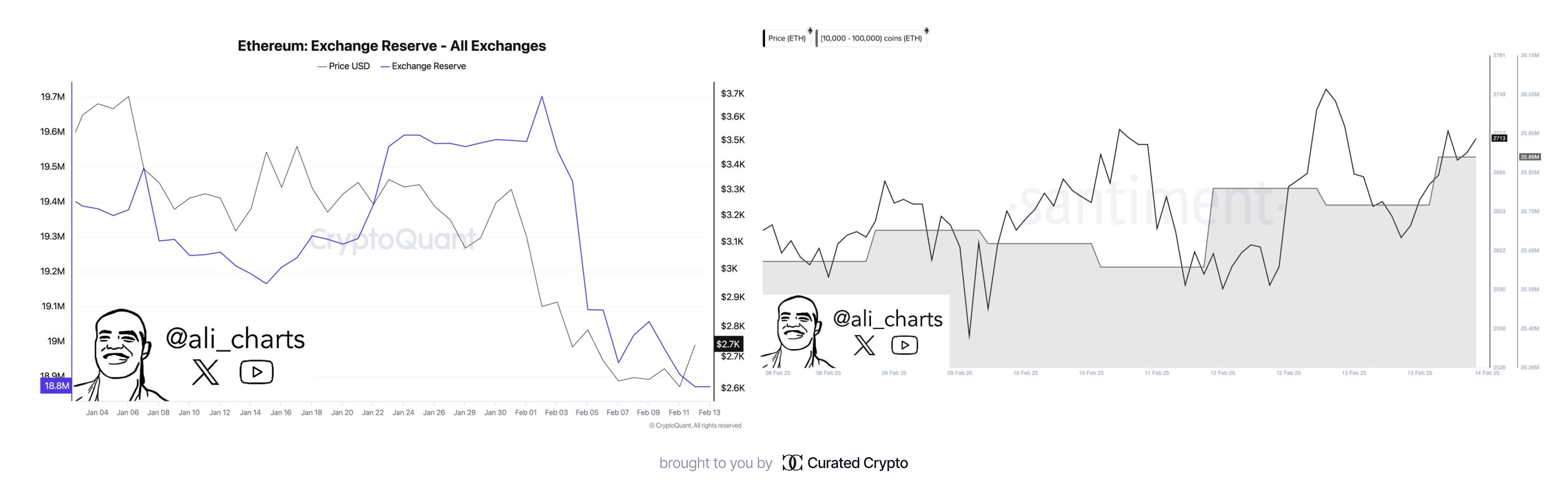 At the same time, centralized exchange reserves have dropped by 1,000,000 ETH over the past two week, according to CryptoQuant. This significant outflow suggests a reduction in potential selling pressure, as investors move their holdings to cold storage.