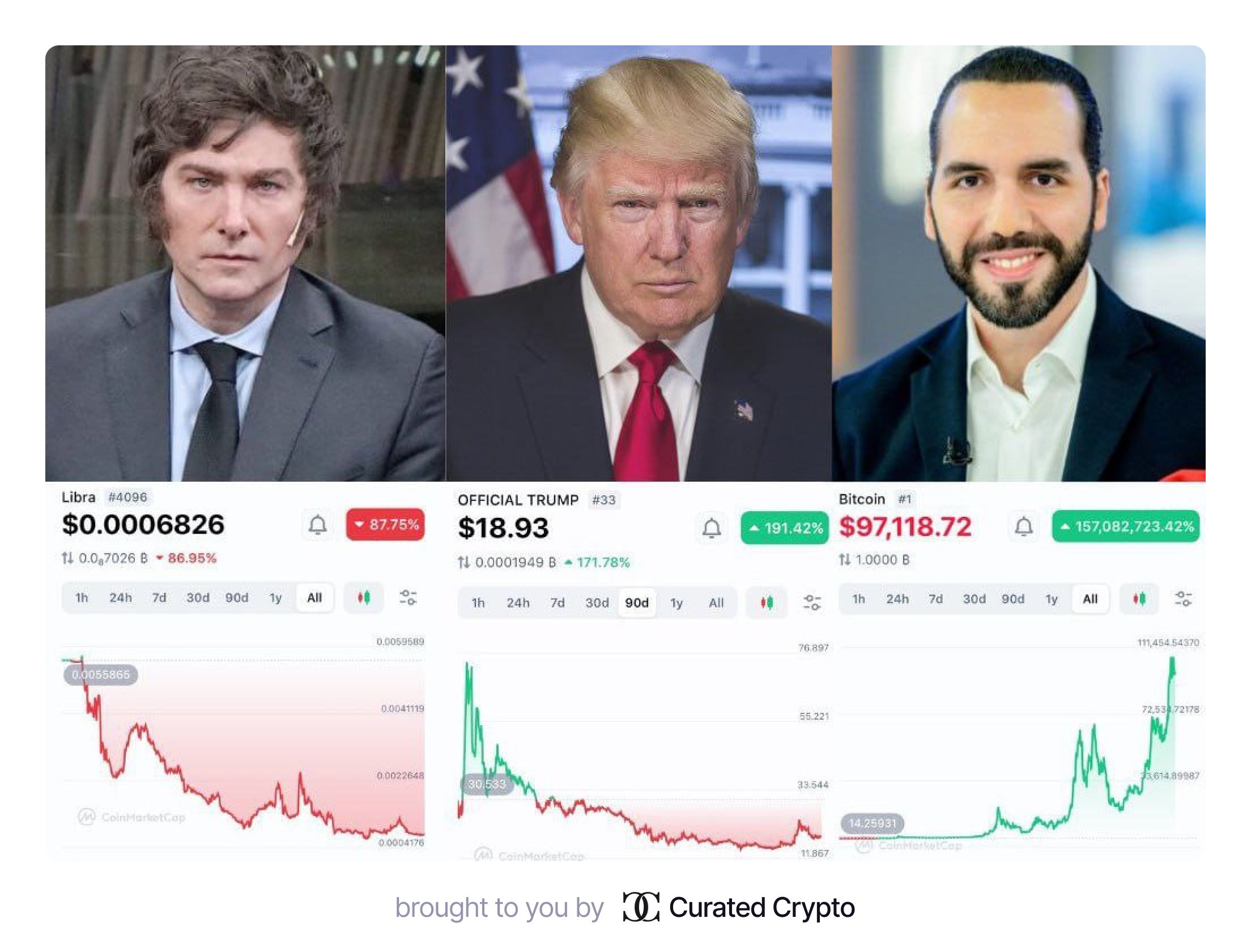 $LIBRA surged to a multi-billion market cap before crashing 95% due to mass sell-offs.