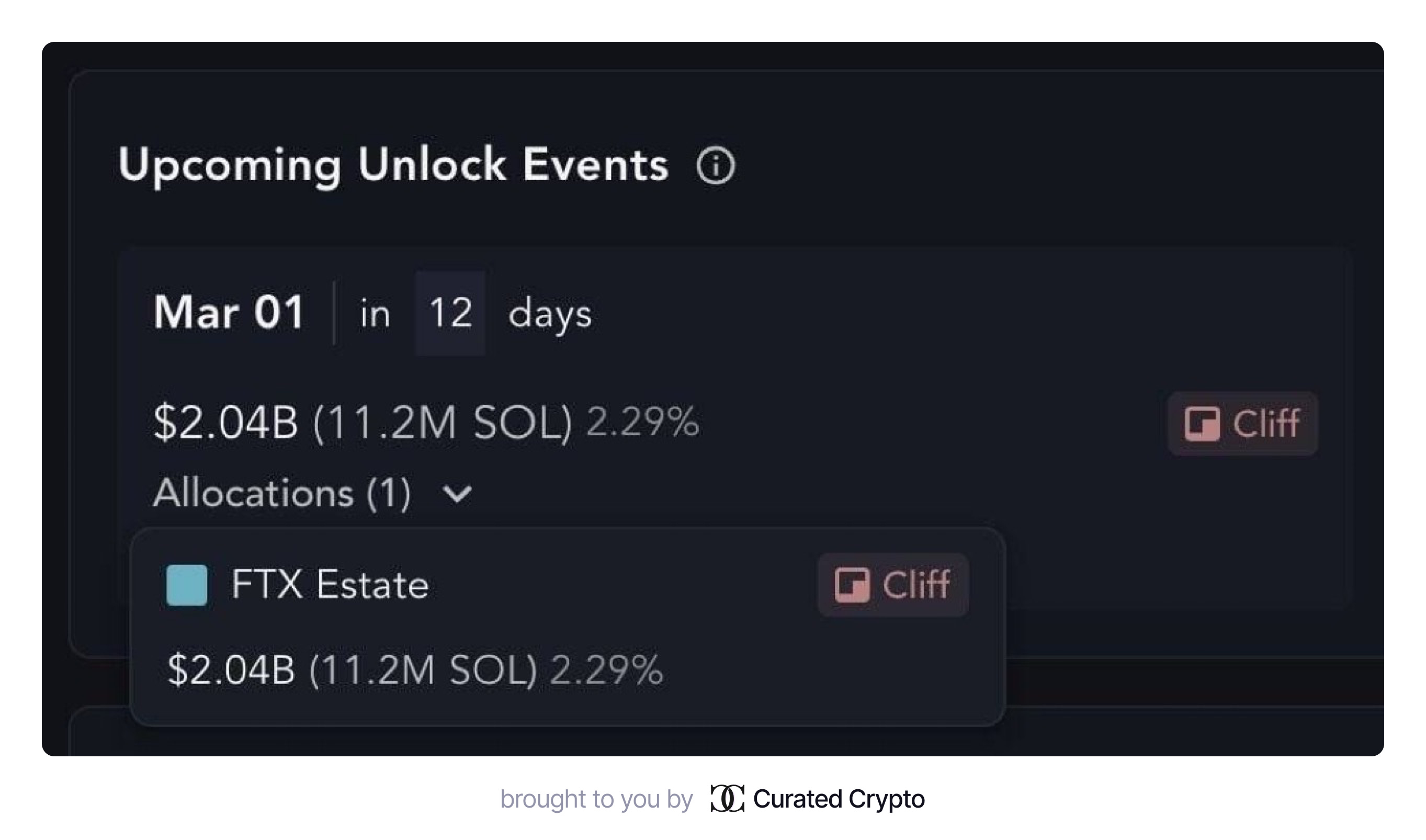Adding to market uncertainty, March 1 will see the first unlocks of SOL tied to FTX’s bankruptcy—11.2M SOL (~$2B). These assets were previously acquired by Galaxy, Pantera, and Figure, potentially increasing selling pressure.