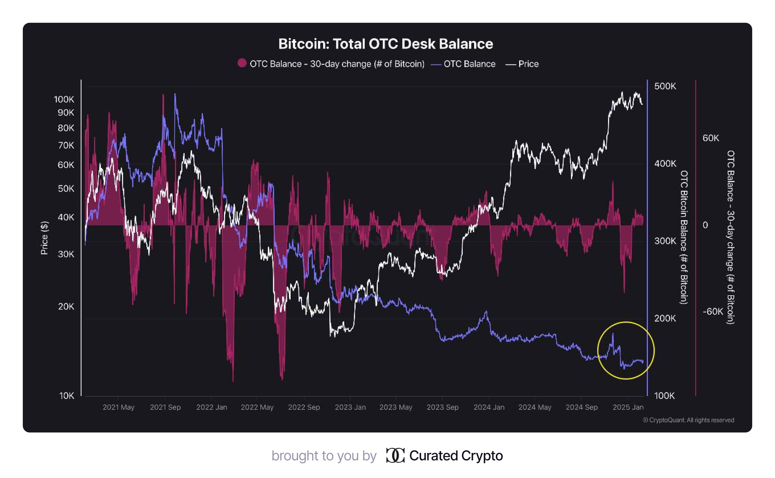 At the same time, BTC reserves on OTC desks are also shrinking rapidly, indicating that coins are being moved into cold storage. If this trend continues, large players may be forced to buy BTC on exchanges with lower liquidity, potentially triggering a price surge.