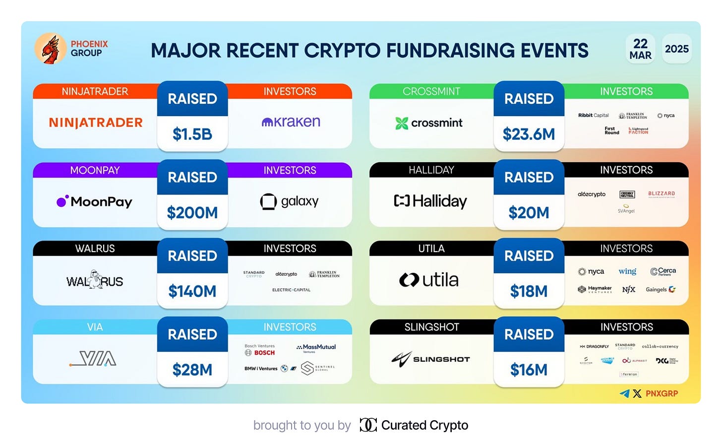 On March 22, 2025, several groundbreaking fundraising rounds in the cryptocurrency space were announced, showcasing significant investments from major players. Below is a comprehensive overview of the projects, funds raised, their investors, and project descriptions: