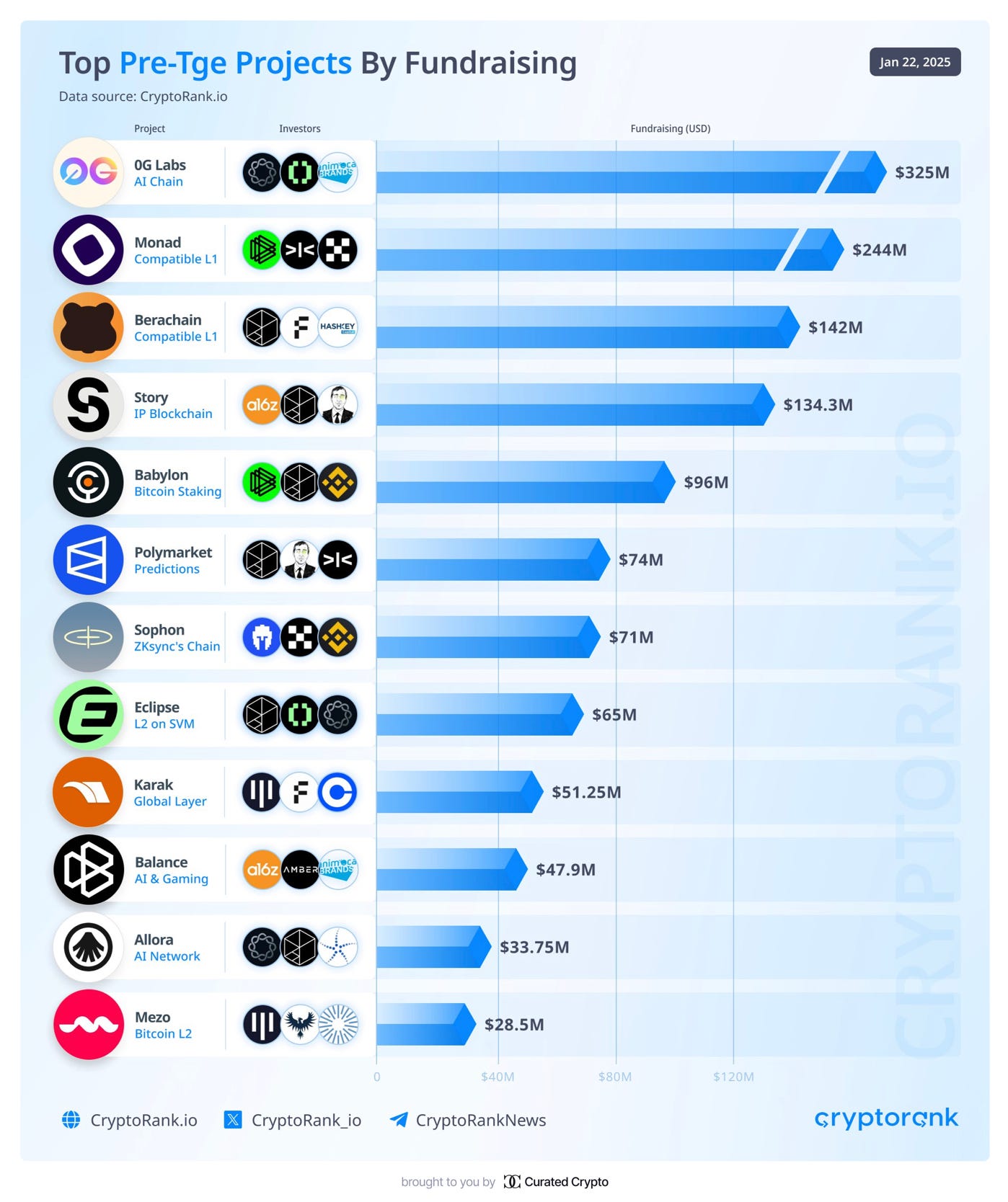 Notably, 0G Labs leads the pack with a massive $369M raised. For detailed insights and participation, visit CryptoRank.